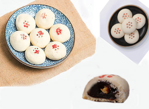 3.制馅:将莲籽、沸水、莲茸、白糖馅的味道